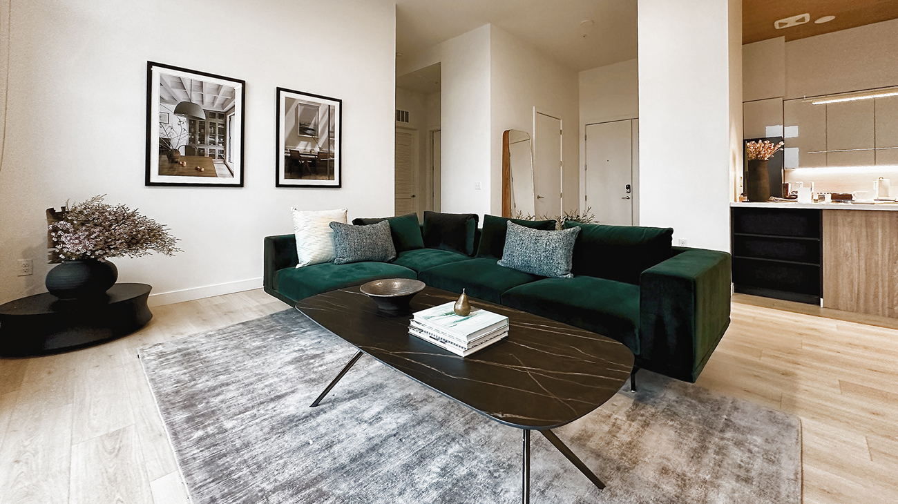 All open-concept residences come with fully equipped kitchens with Quartz countertops, as well as washers and dryers. Amenities include Frette bedding, Grown Alchemist bath products, Smart TVs, Nespresso machines and cooking appliances. Kitchens are stocked with cookware, glassware and cutlery.